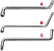 Con bussola esagonale snodata. In scatola serie 7 pz. Misure: 8-10-11-13-14-17-19.