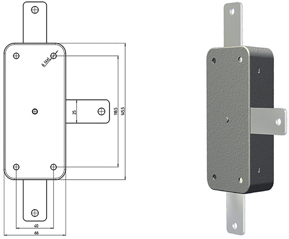 Serratura elettrica per cancelli REVERSIBILE. 8-12V. AC/DC. Entrata regolabile mm.50-70. Apertura spingere o tirare. Incontro regolabile. Compatibilit? con le serrature pi? diffuse. Tettuccio dedicato con distanziali per corretto montaggio.