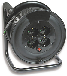 Tamburo d.mm.260. Con disgiuntore. 4 prese 2P+T 16A. 250V Bipasso-Schuko. Spina 2P+T 16A. 250V.