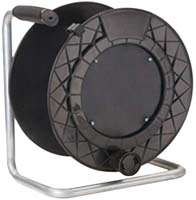 Supporto metallico. Senza cavo. Tamburo termoplastico d.mm.320. Disco centrale cieco senza prese. Non rientra nella categoria degli avvolgicavi elettrici, pertanto non ? sottoposto a marcatura CE.