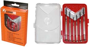 Cacciaviti di precisione ideali per lavori su orologi, occhiali, modellismo, computer, macchine fotografiche. Serie 6 pz: 4 pz. Taglio 1,4-2-2,4-3 + 2 pz. Phillips 0-1.