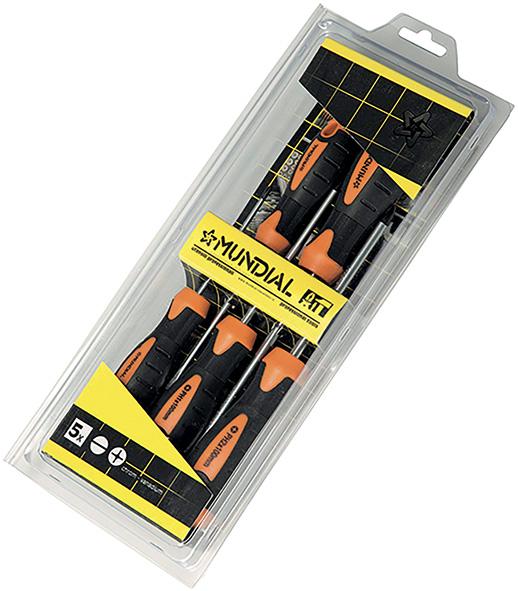 Impugnatura bimateriale. Acciaio al cromo vanadio. Serie 5pz: taglio 4x100-6x150, phillips 0x75-1x100-2x100.