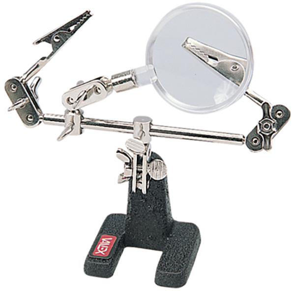 Per minimontaggi. In acciaio. Con lente d'ingrandimento e 2 pinzette.
