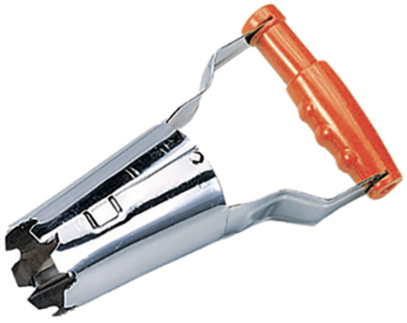 In acciaio con impugnatura in materiale plastico. Diametro mm.125. Lunghezza mm.230.