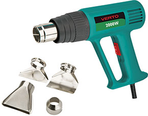 Pistola ad aria calda con 4 accessori. 2 temperature: 350?C flusso d'aria 300 lt/min. - 550?C flusso d'aria 500 lt/min.