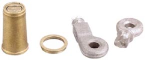 Gruppo accessori per lucchetti corazzati da mm.90 composto da: 1 campana in ottone con ghiera di guarnizione e una coppia di occhioli in acciaio.