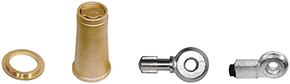 Gruppo accessori composto da: campana di bloccaggio a pavimento in ottone con tappo molleggiato integrato, anelli in acciaio forgiato e zincato, ghiera campana in ottone.