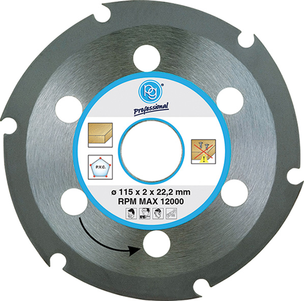 Per tagliare, smussare, fresare il legno, utilizzando una smerigliatrice angolare. Utilizzabili anche per taglio PVC. Foro d.mm.22,2. 12000 giri/min.