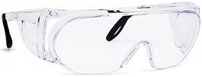 Sovraocchiali per visitatori adatti per essere indossati sopra gli occhiali da vista personali. Protezione a 360?. Stanghette elastiche per maggior comfort. Montatura trasparente. Lente in policarbonato. Protezione UV 100%. Peso gr.41. CE certificati DPI EN166-EN170.