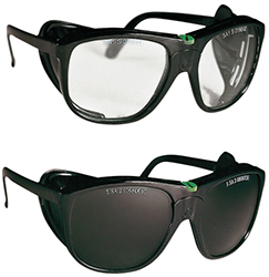 Occhiali a stanghetta con lenti bombate e ripari laterali. Lenti sostituibili.