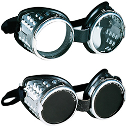 Occhiali in alluminio con elastico regolabile. Lenti sostituibili d.mm.50.