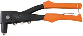 Con 5 testine intercambiabili. Rapporto di leva ottimizzato per una maggiore compattezza e praticit? d'uso. 3 griffe per una presa perfetta del rivetto. Per rivetti d.mm.2,4-3,2-4,0-4,8.