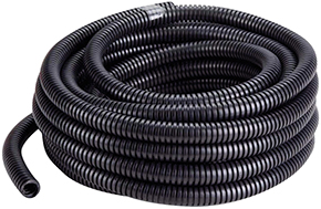 Tubo protettivo corrugato flessibile in PVC nero. Classificazione 3321 secondo la norma EN 61386-1, EN 61386-22. Autoestiguenza di grado V0 secondo la norma UL94. Resistenza allo schiacciamento 750N.
