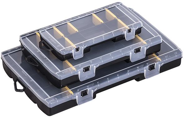 Organizer in polipropilene. Coperchio trasparente in policarbonato a chiusura ermetica, nessun rischio di mischiare il contenuto. Separatori removibili.