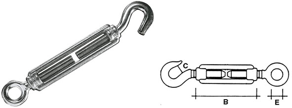 | 301170 | TENDITORI OCCHIO E GANCIO 5 | d.mm. 5, 3/16 pol, mm. E 8 B 79 | PZ | 1 | Chiedi in negozio | |