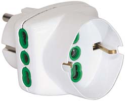 Adattatore triplo VERTICAL SYSTEM. Spina verticale 2P+T 16A schuko. 1 presa bipasso Schuko 2P+T 16A. + 2 prese 2P+T 16A.