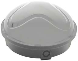 In materiale termoplastico. Base grigia, calotta trasparente. Portalampada E27 per lampade ad incandescenza (max 60 W.) o fluorescenti a basso consumo. d.mm.215.