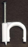 Chiodi in acciaio nichelato con fissacavo in plastica bianco. Scatole da 100 pz.
