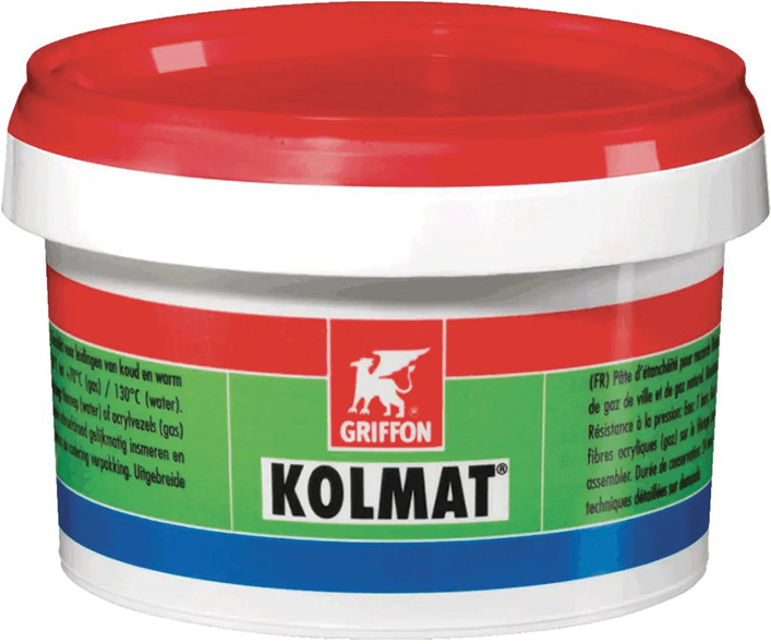 Per sigillature dei giunti e dei raccordi filettati delle condotte di acqua e gas unitamente a sfilacciatura di canapa (rista cod.361785) che deve essere applicata prima della pasta verde KOLMAT approvata da ITALGAS e conforme al D.M.102 del Ministero della Sanit?. Limiti di temperatura: -20C +70C (gas) +130C (acqua).