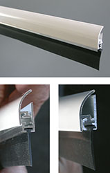 In alluminio: colore marrone e/o bianco. Guarnizione gomma nera. Regolabile. Tappi e viti fissaggio in dotazione.