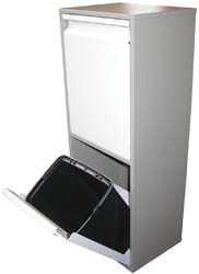 Mobile in metallo con verniciatura epossidica. Due cassetti basculanti di uguale dimensione dotati di 2 secchi con manico, capienza lt.15. Peso kg.10