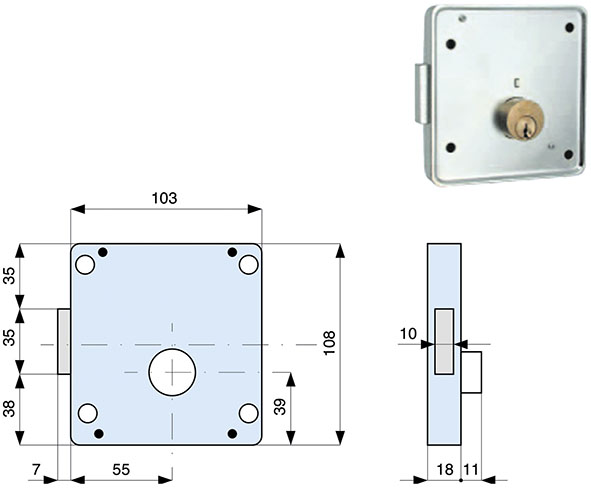 Serrature da applicare quadre tipo Torino per cancelletti. 2 mandate. Catenaccio in acciaio. In dotazione cilindro tondo fisso rasato MG 008110 ns.cod.839226.